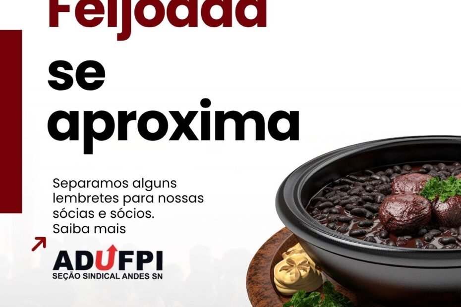 Está chegando o dia da nossa tradicional feijoada das professoras e dos professores da ADUFPI 🎶🍛 🗓️ É sábado, 18 de outubro de 2025 📍… Continue a ler »Nossa Feijoada dos(as) Professores(as) 2025 se aproxima. Saiba Mais.