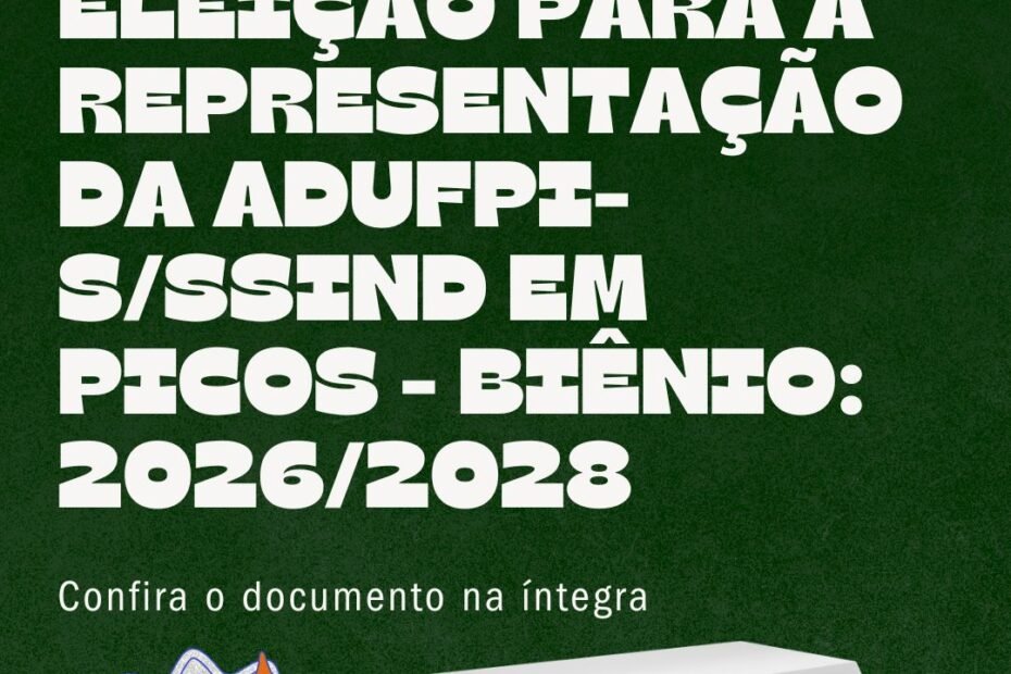 Este Edital estabelece regras para o certame da Eleição da Representação Regional ADUFPIS/SSIND na cidade de Picos de acordo com Estatuto do ANDES; Regimento interno… Continue a ler »REGULAMENTO DA ELEIÇÃO PARA A REPRESENTAÇÃO DA ADUFPI-S/SSIND EM PICOS – BIÊNIO: 2026/2028
