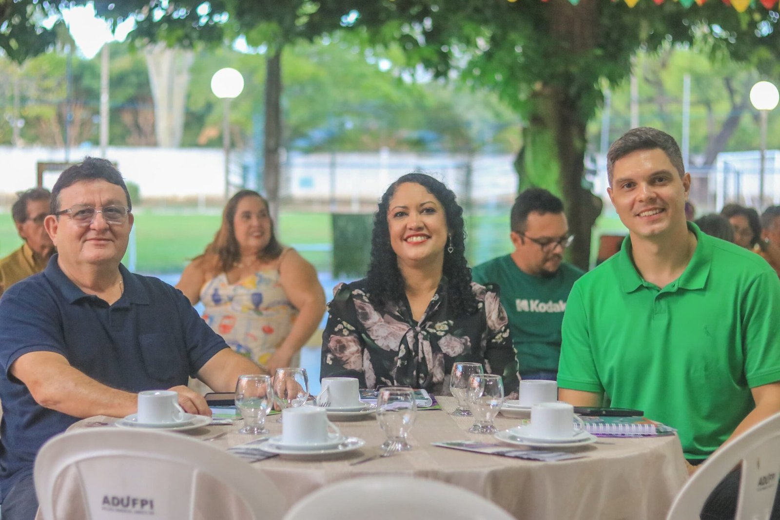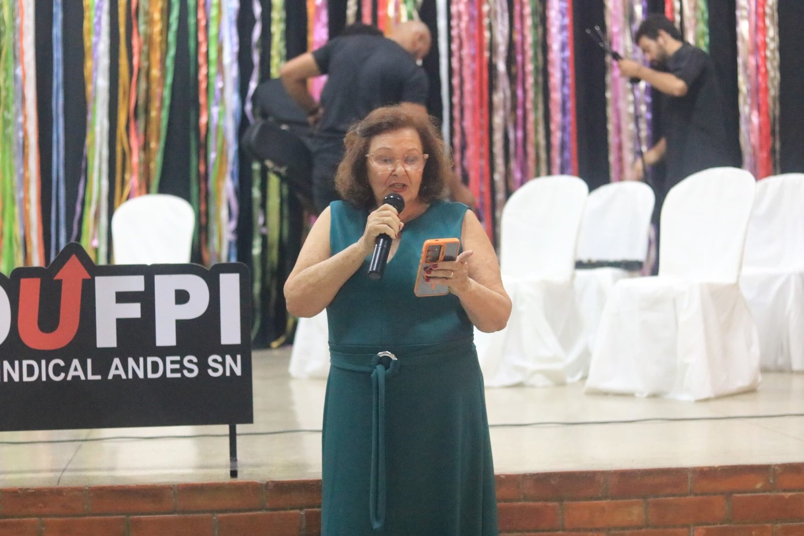 A cerimônia foi conduzida com afeto e sensibilidade pela professora Edivania Lima, Diretora de Comunicação e Imprensa, que com sua dedicação guiou os momentos de homenagem e celebração. Estiveram presentes a Presidenta da ADUFPI, professora Maria Escolástica, a Vice-Presidenta professora Bárbara Johas (CCHL), o Diretor Financeiro professor Antonio Kelson, a Diretora Acadêmica e Cultural professora Socorro Solano (representando com orgulho os aposentados), o Diretor de Relações Sindicais professor Arnaud Azevêdo e a Diretora de Sede Social professora Naise Caldas.