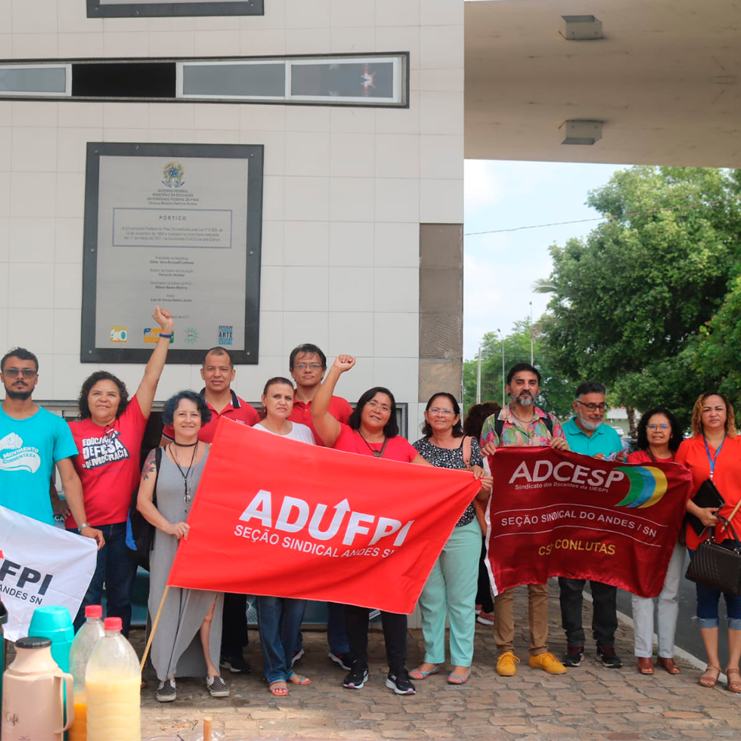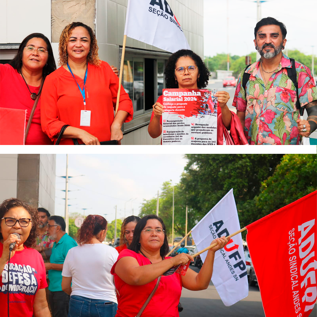 Nesta quarta-feira, dia 30 de agosto, a categoria docente, mobilizada pela ADUFPI, realizou um ato no pórtico da UFPI, onde tornou pública sua indignação frente a proposta apresentada pelo governo durante a 4ª Rodada da Mesa Nacional de Negociação.
