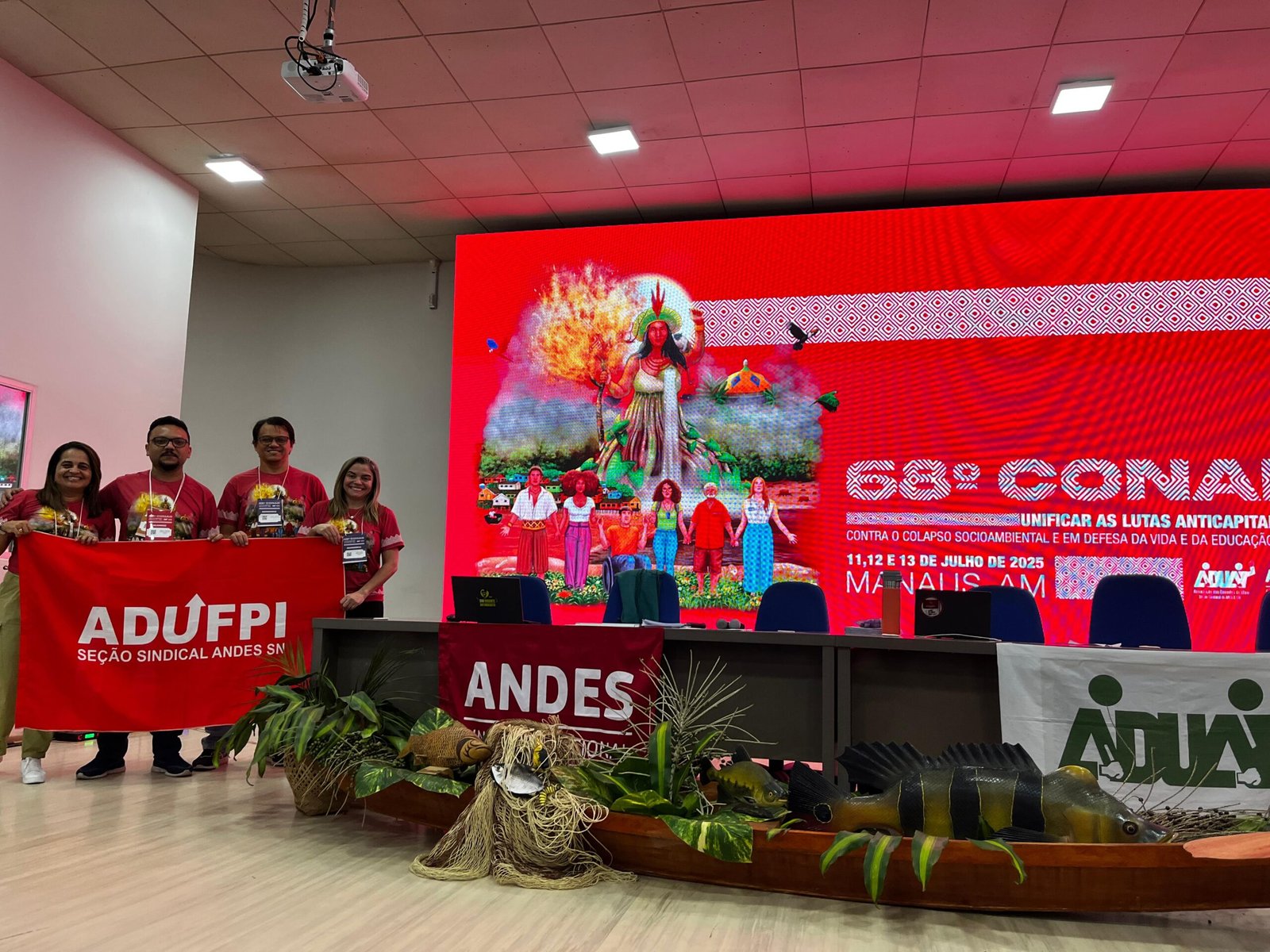 A ADUFPI marcou presença no 68º Conselho do ANDES-SN (Conad), realizado na Universidade Federal do Amazonas (UFAM), em Manaus. O encontro reuniu mais de 300 docentes de todo o país, que participaram de intensos debates e aprovaram importantes deliberações para orientar as lutas da categoria no próximo período. Um dos encaminhamentos aprovados foi a adesão do ANDES-SN e de suas seções sindicais ao Plebiscito Popular: Por um Brasil mais Justo.