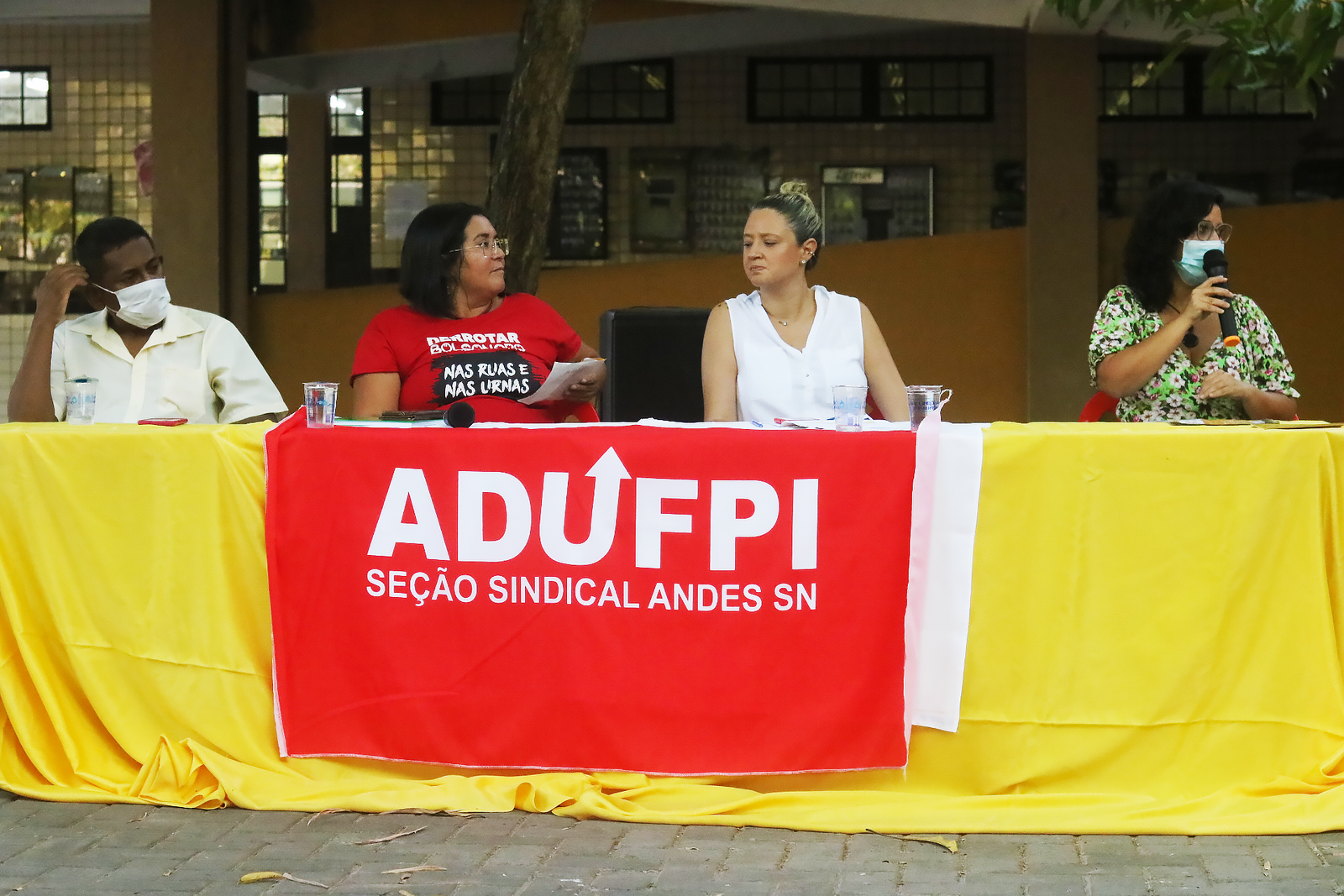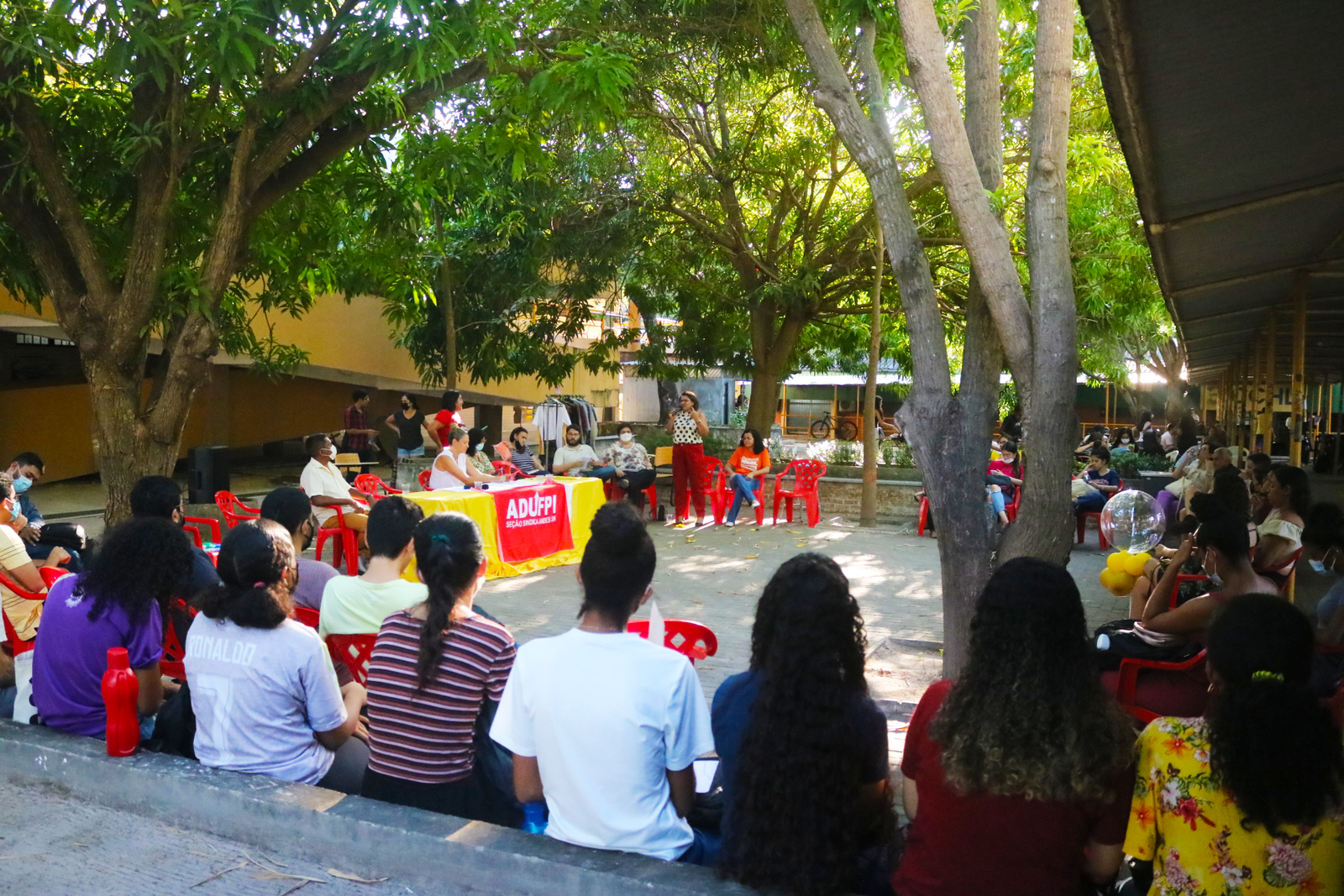 A ADUFPI realizou nessa quarta-feira (21), no engate do CCHL com o CCE, a roda de conversa “Valorização da vida” para falar sobre ansiedade, depressão e saúde mental, dando continuidade às ações da Campanha Setembro Amarelo. Durante a ação, foram discutidas as várias situações que levam o adoecimento mental e a importância da conscientização da sociedade sobre a saúde psicológica, que também pode estar relacionada ao emprego, à família, à situação financeira, entre outras questões.
