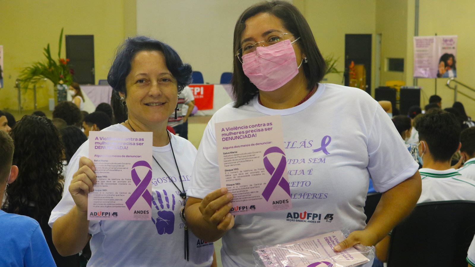 Na manhã desta quinta-feira (25), a Diretoria da ADUFPI representada por sua Presidenta, Professora Drª. Marli Clementino e de sua Secretária-geral, Professora Drª. Julinete Castelo Branco, realizaram a primeira atividade do calendário de ações da campanha Agosto Lilás.