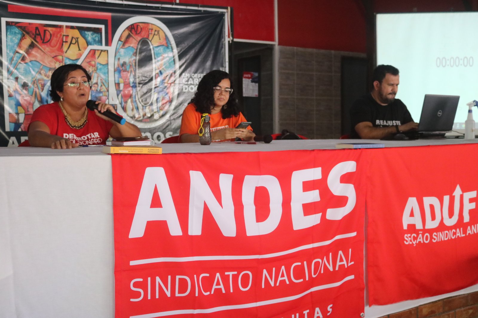 Estiveram presentes os demais diretores da ADUFPI, representantes do SINTUFPI, DCE, APG e docentes de diferentes Centros e Campi da UFPI.