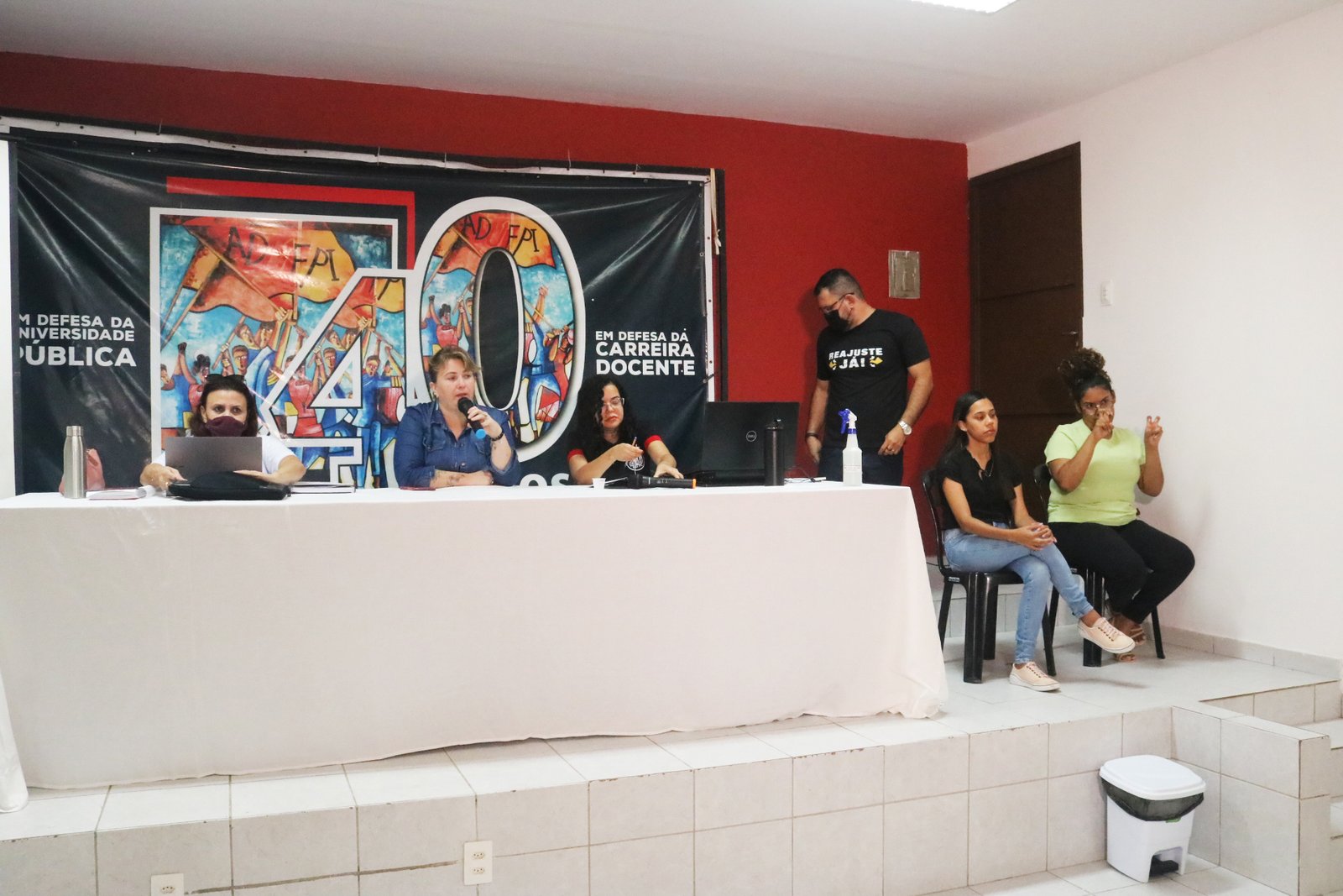 Ao iniciar os trabalhos, a mesa saudou todas as pessoas presentes, também as que participaram de forma remota e solicitou um minuto de silêncio em homenagem e luto pelo assassinato da estudante de jornalismo, Janaina Bezerra. Encerradas as primeiras considerações de método e condução da assembleia as entidades convidadas apresentaram suas análises a respeito da pauta proposta.