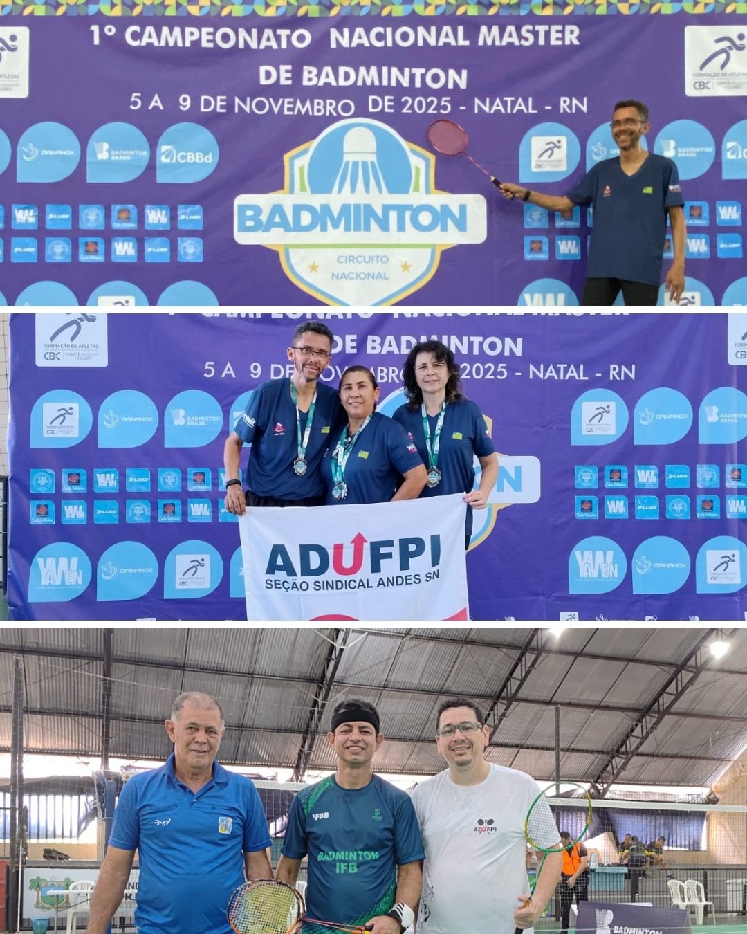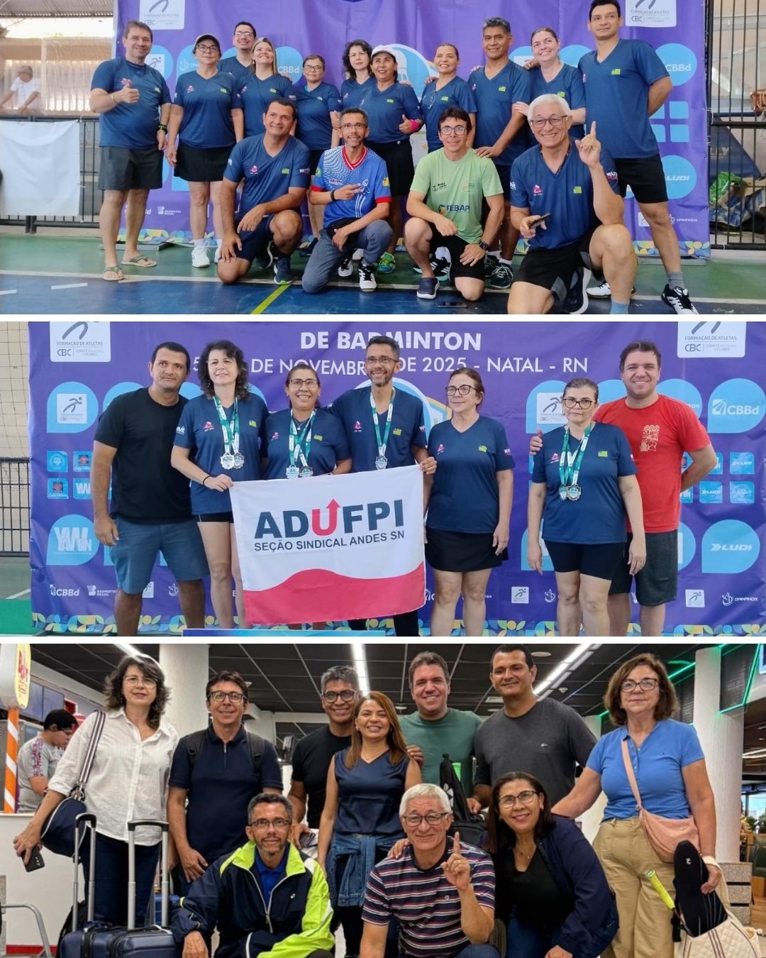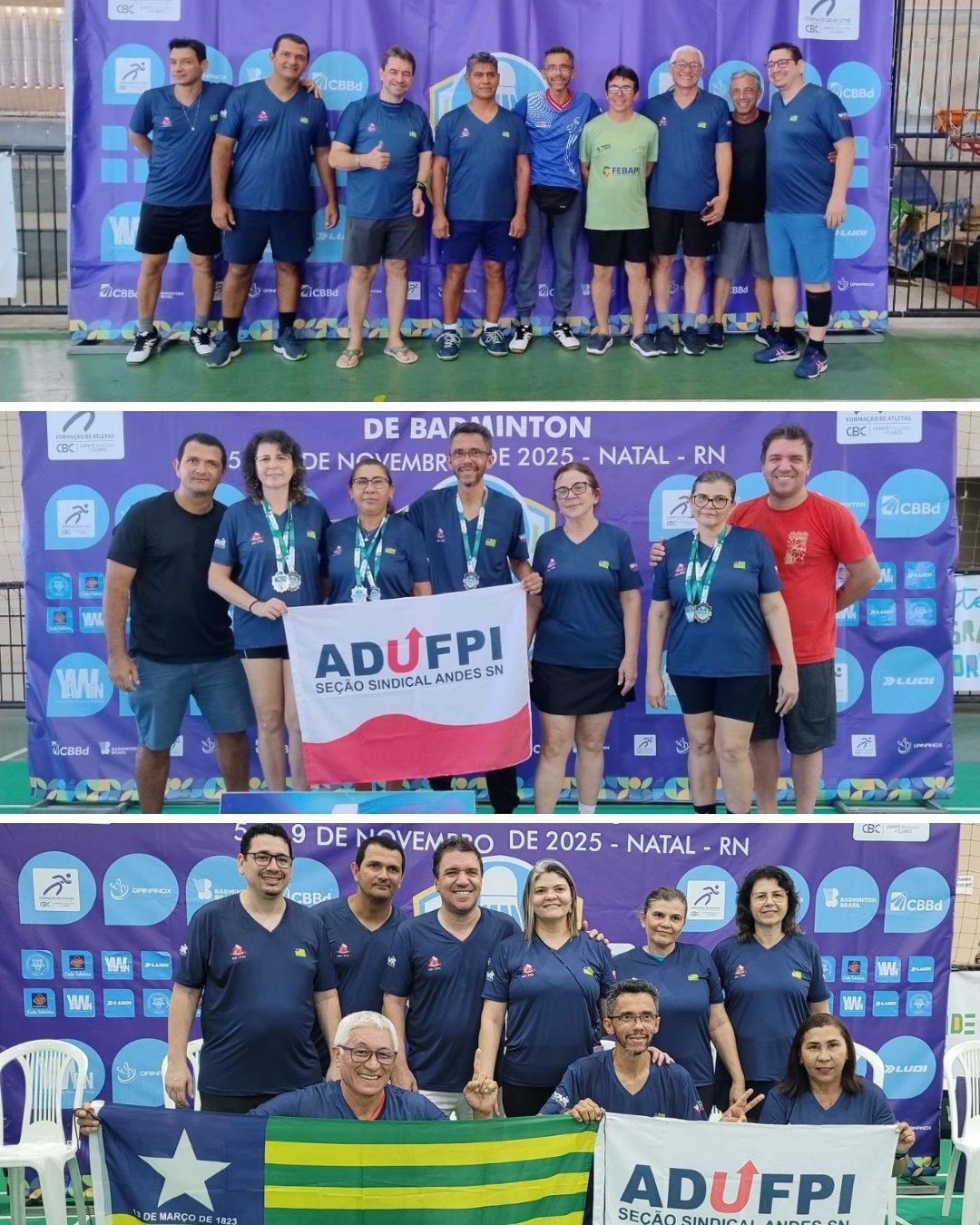 Entre os dias 5 e 9 de novembro de 2025, a equipe da ADUFPI, fazendo parte da Delegação Piauiense de Badminton brilhou no 1º Campeonato Nacional MASTER da modalidade, realizado em Natal (RN), conquistando medalhas para o Piauí, e mostrando a força do esporte no estado.