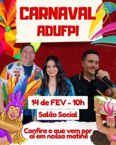 🎭✨ Vem aí o Abre Alas do Carnaval da ADUFPI!✨🎭 O clima de folia já está no ar! Neste sábado, 14 de fevereiro, a partir