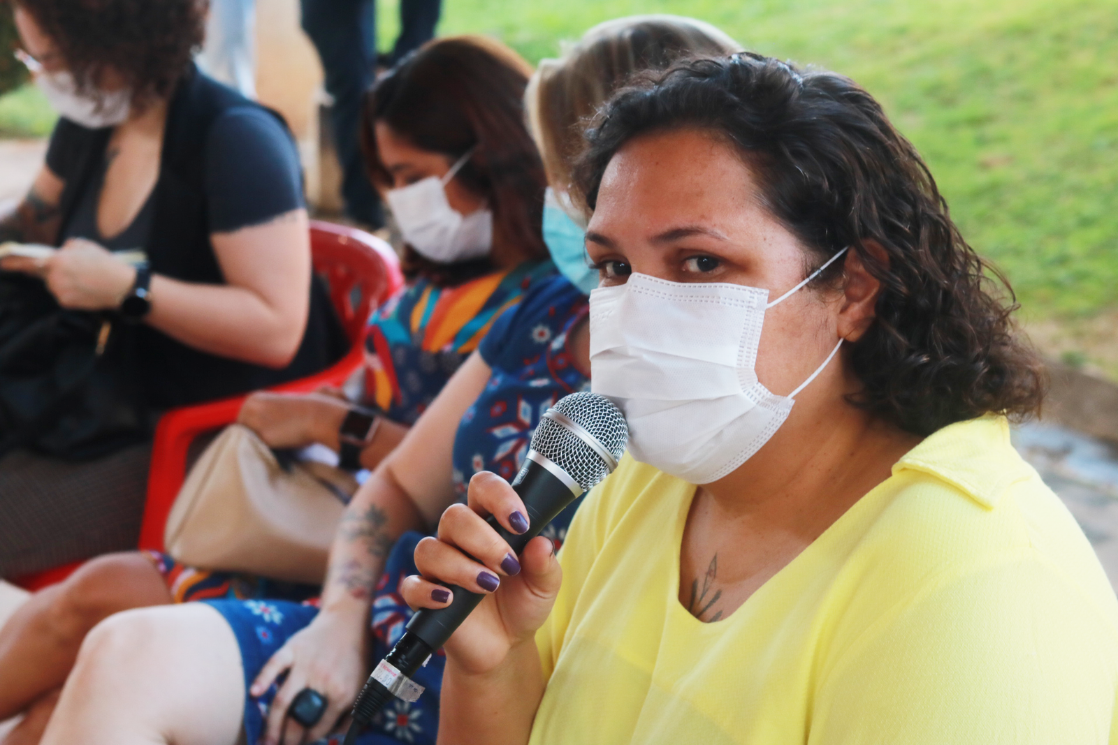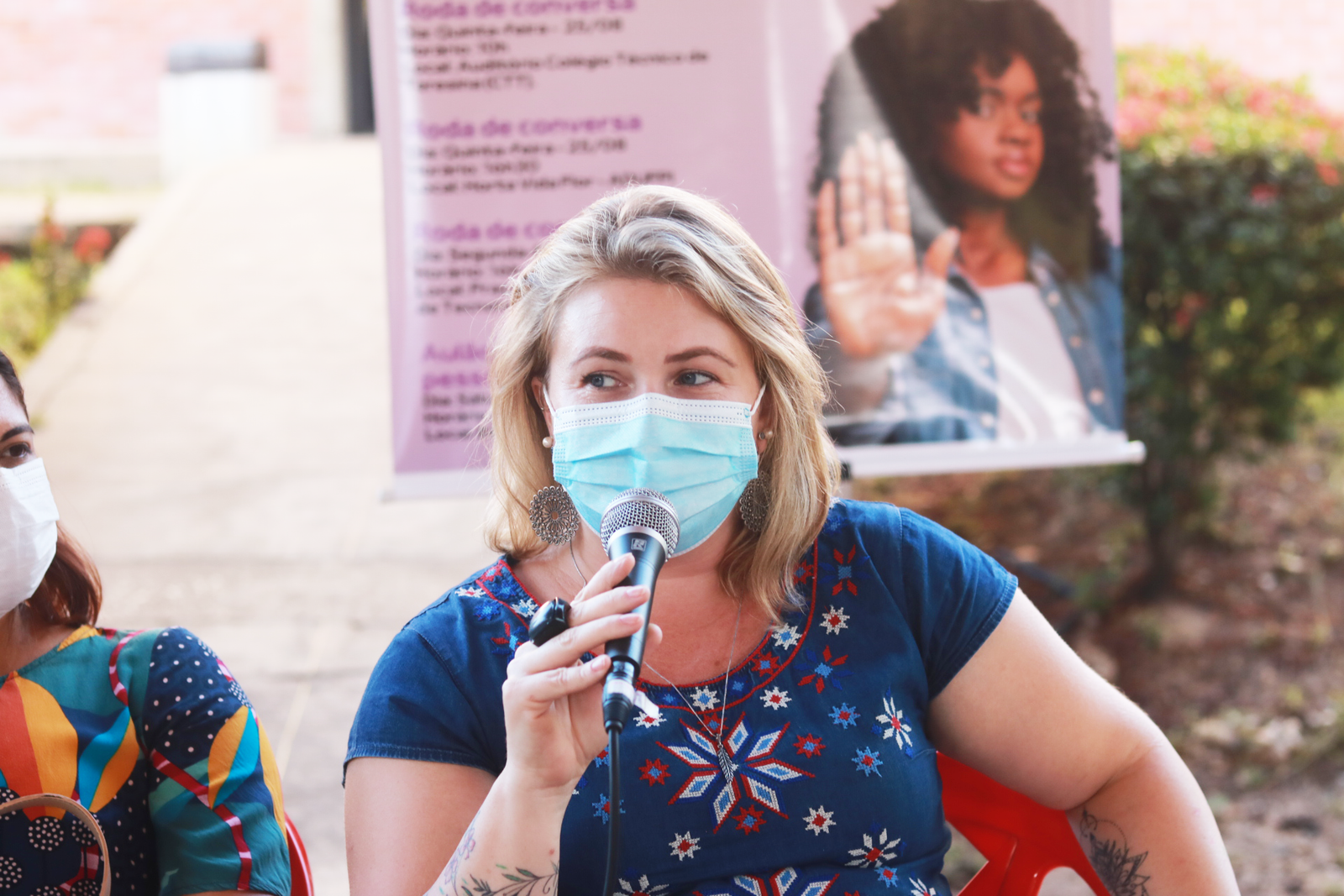 Rossana Marinho, socióloga, abriu a roda de conversa e frisou que “as violências não acontecem só em casa, mas também nas relações de poder, quando estas são desiguais e opressivas”. A antropóloga Mariane Pisani pontuou que devemos debater e aprender sobre esse assunto para não naturalizar as violências, reforçando que é necessário, ainda, nomear as agressões sofridas, sejam elas morais, sexuais, patrimoniais, psicológicas ou físicas.