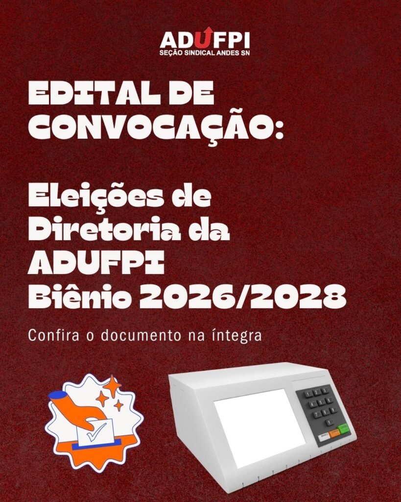 Eleições ADUFPI: Edital de Convocação para Eleição de Diretoria da ADUFPI, biênio 2026-2028