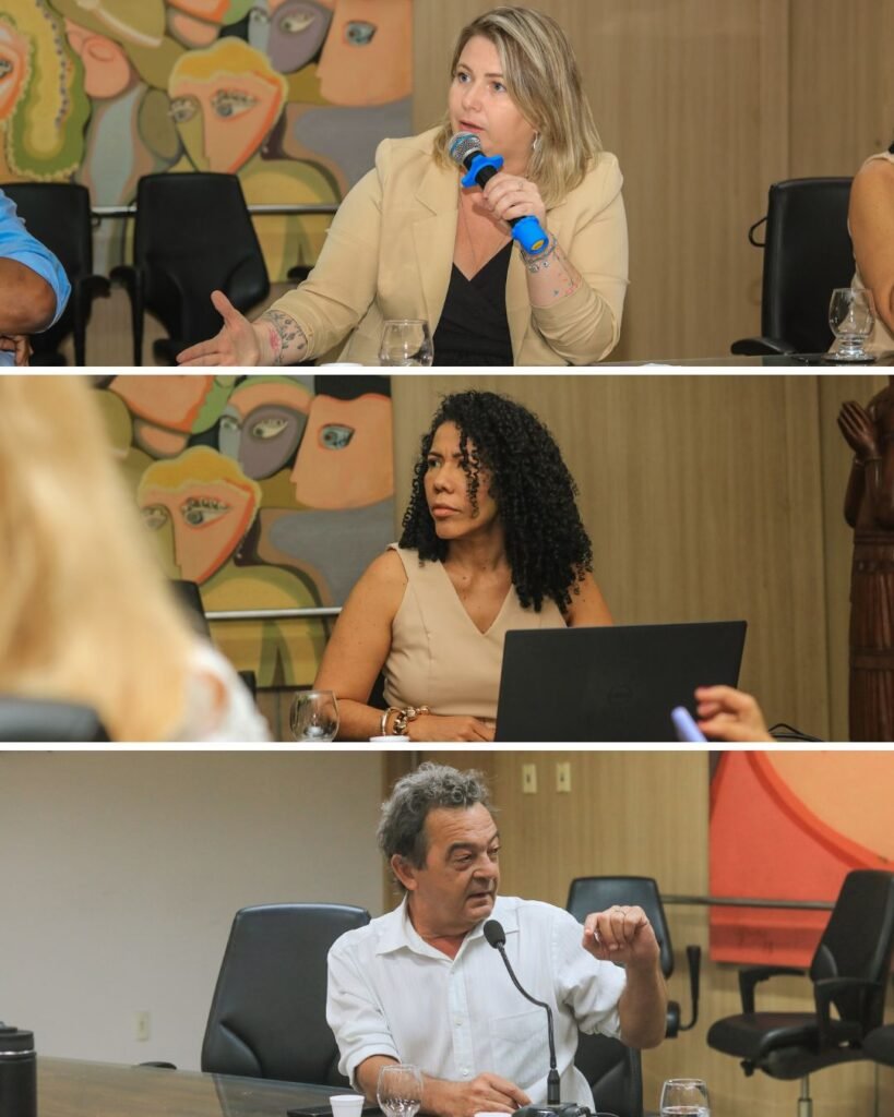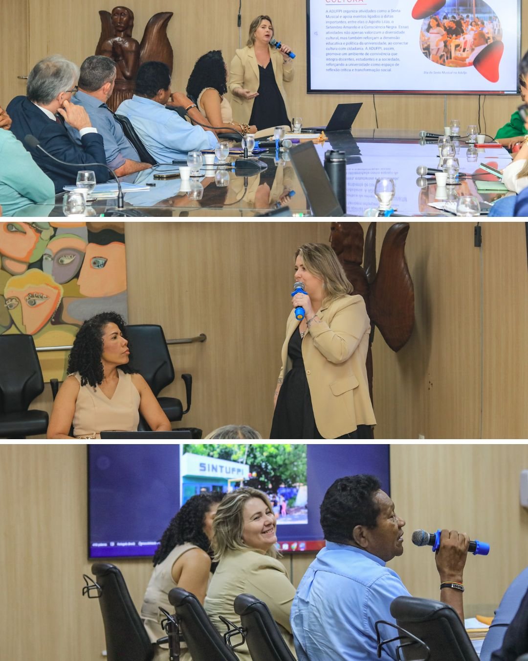 A vice-presidenta da ADUFPI, Bárbara Johas, e a diretora de Sede Social, Naise Caldas, conduziram a exposição do material, acompanhadas pelo assessor jurídico da entidade, Dr. Helbert Maciel. O dossiê apresentado tem como finalidade subsidiar o pedido de reconhecimento do uso de interesse social do terreno ocupado pelo sindicato, demonstrando a importância estratégica de sua estrutura física para o fortalecimento da vida sindical e da democracia universitária.