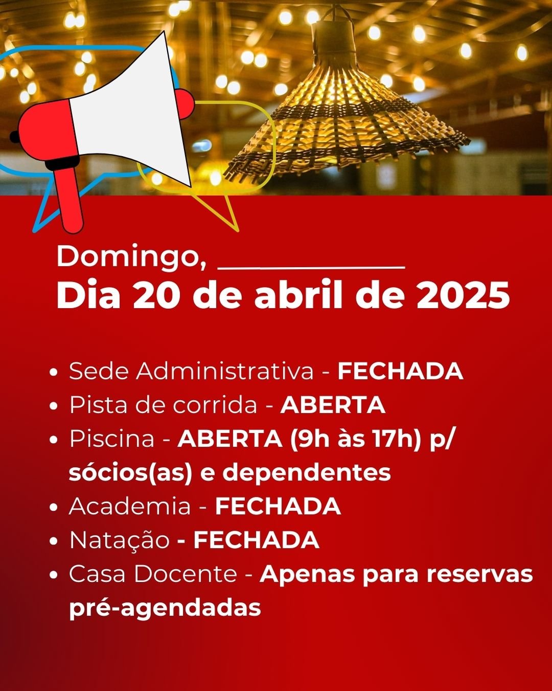 🏊 Piscina – ✅ ABERTA (🕘 9h às 17h) p/ sócios(as) e dependentes