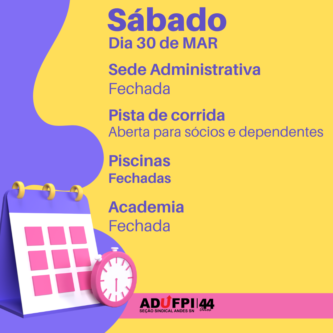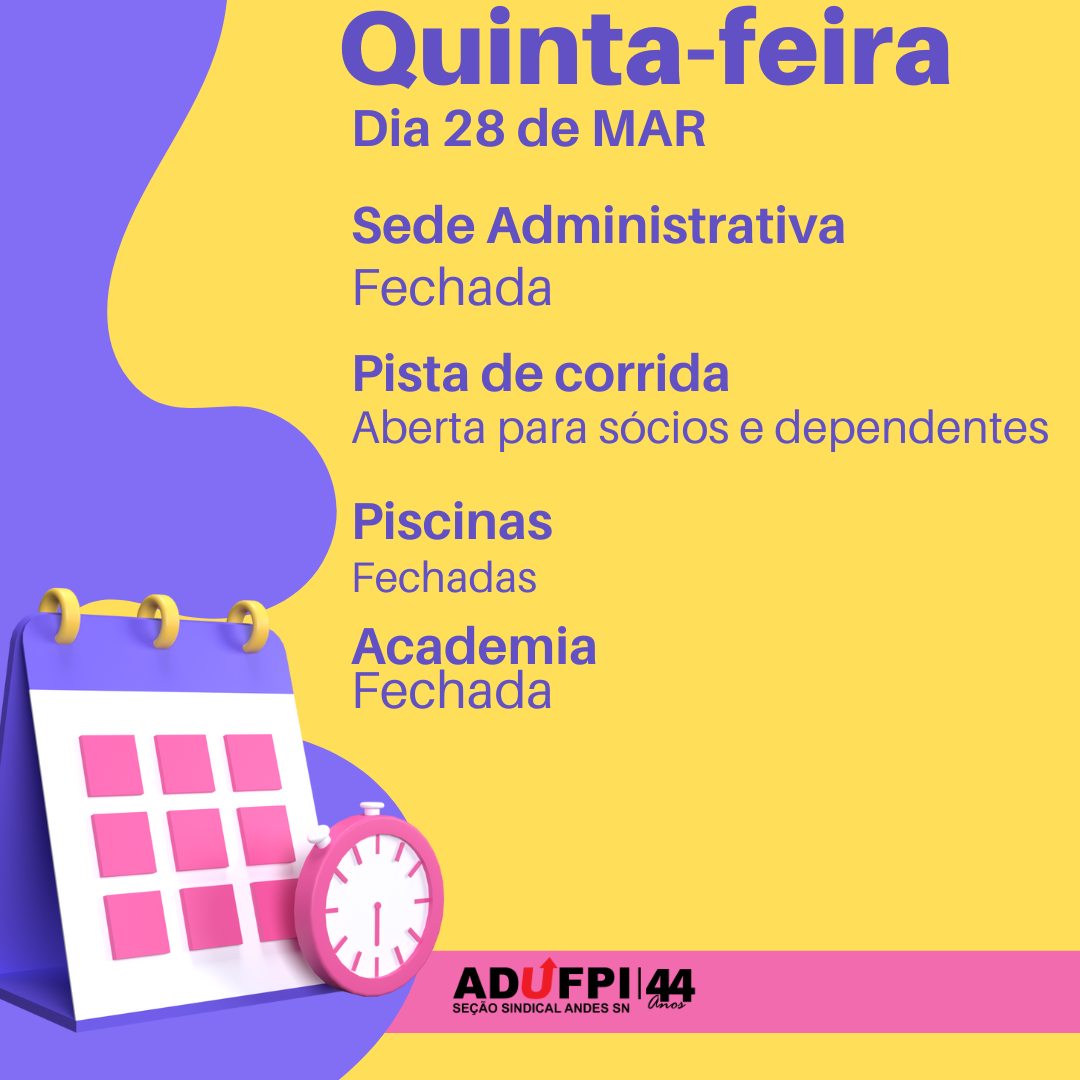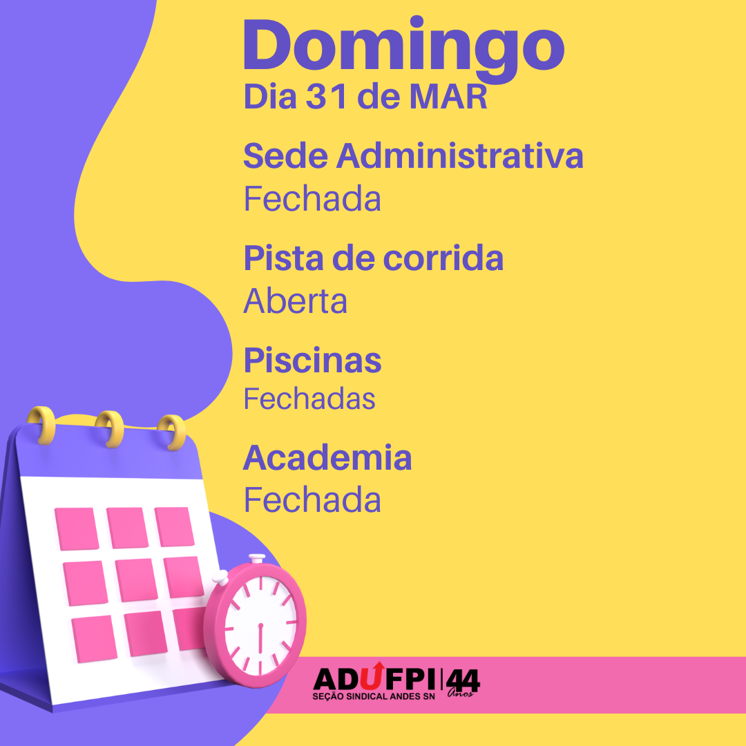 Informamos que, nesta terça-feira dia 21 de abril de 2026, a ADUFPI estará fechada em decorrência do feriado de Tiradentes. A pista de corrida e