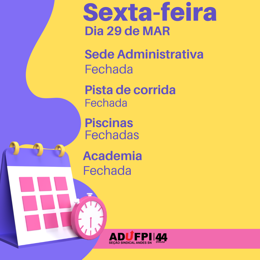A Diretoria informa que do dia 02 ao dia 05 abril de 2026, a ADUFPI estará fechada, em razão do feriado da semana santa. Retornamos