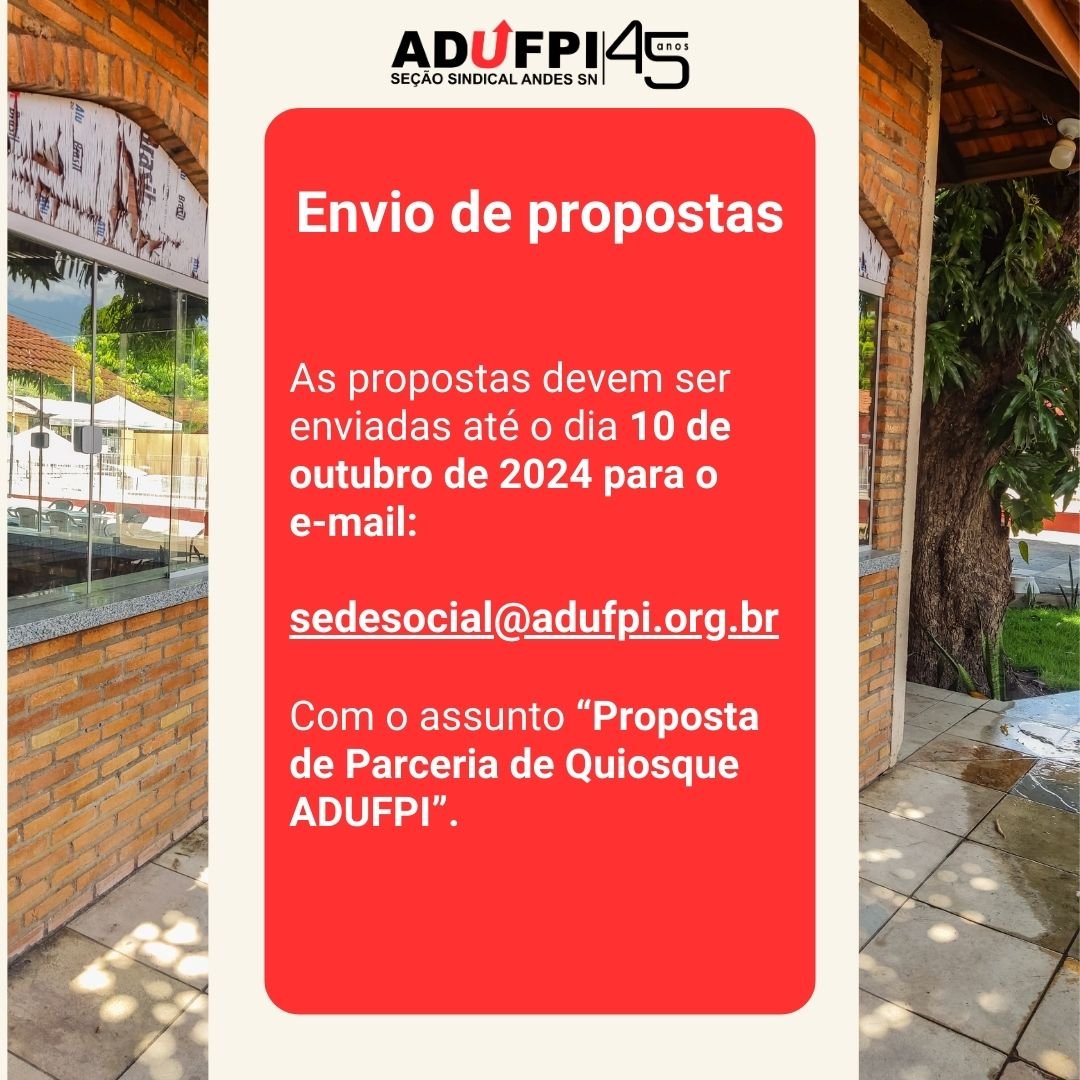 📌Com o assunto “Proposta de Parceria de Quiosque ADUFPI”.