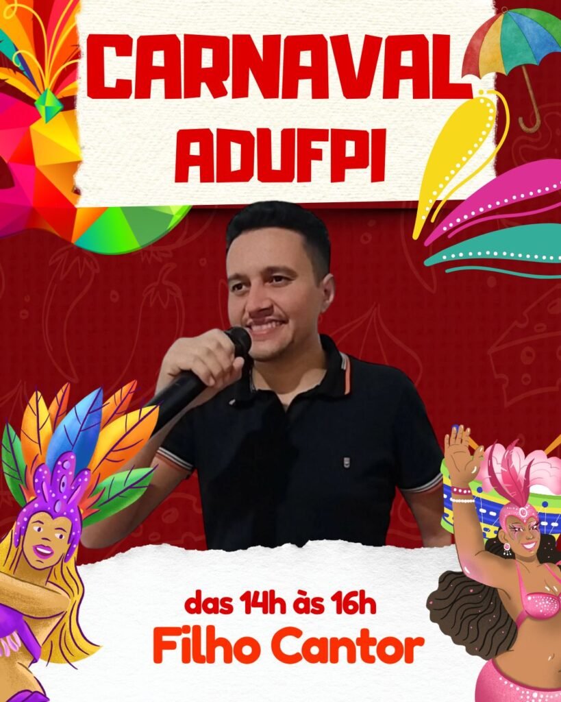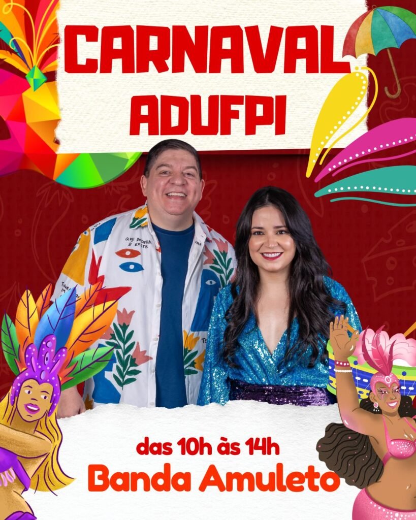 O clima de folia já está no ar! Neste sábado, 14 de fevereiro, a partir das 10h, a ADUFPI abre oficialmente o Carnaval com muita música, alegria e animação! A festa fica por conta da Banda Amuleto e do Filho Cantor, garantindo aquele repertório contagiante para ninguém ficar parado! 🎶🥁 💃🕺