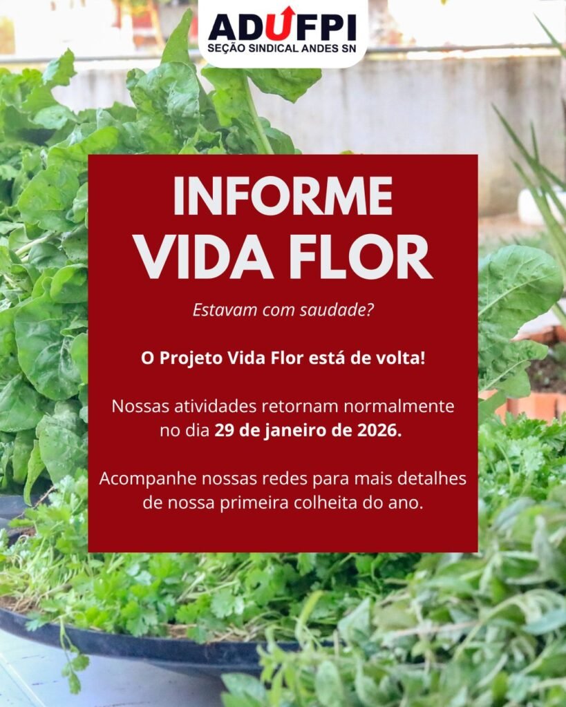 👉🏽 E você, professora ou professor associado(a) da ADUFPI que ainda não conhece o Projeto Vida Flor, esperamos sua presença na próxima quinta-feira!