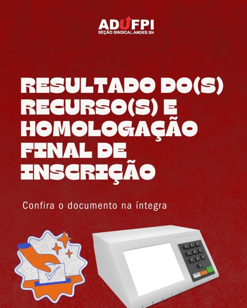 A Presidente da Comissão Eleitoral, regional de ADUFPI/Bom Jesus, de acordo com as disposições do edital de que trata da eleição para a representação da ADUFPI/SSIND em Bom Jesus – Biênio: 2025/2027, torna público o resultado referente ao período destinado à interposição de recursos sobre as inscrições de chapas.