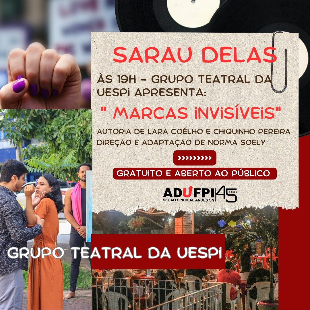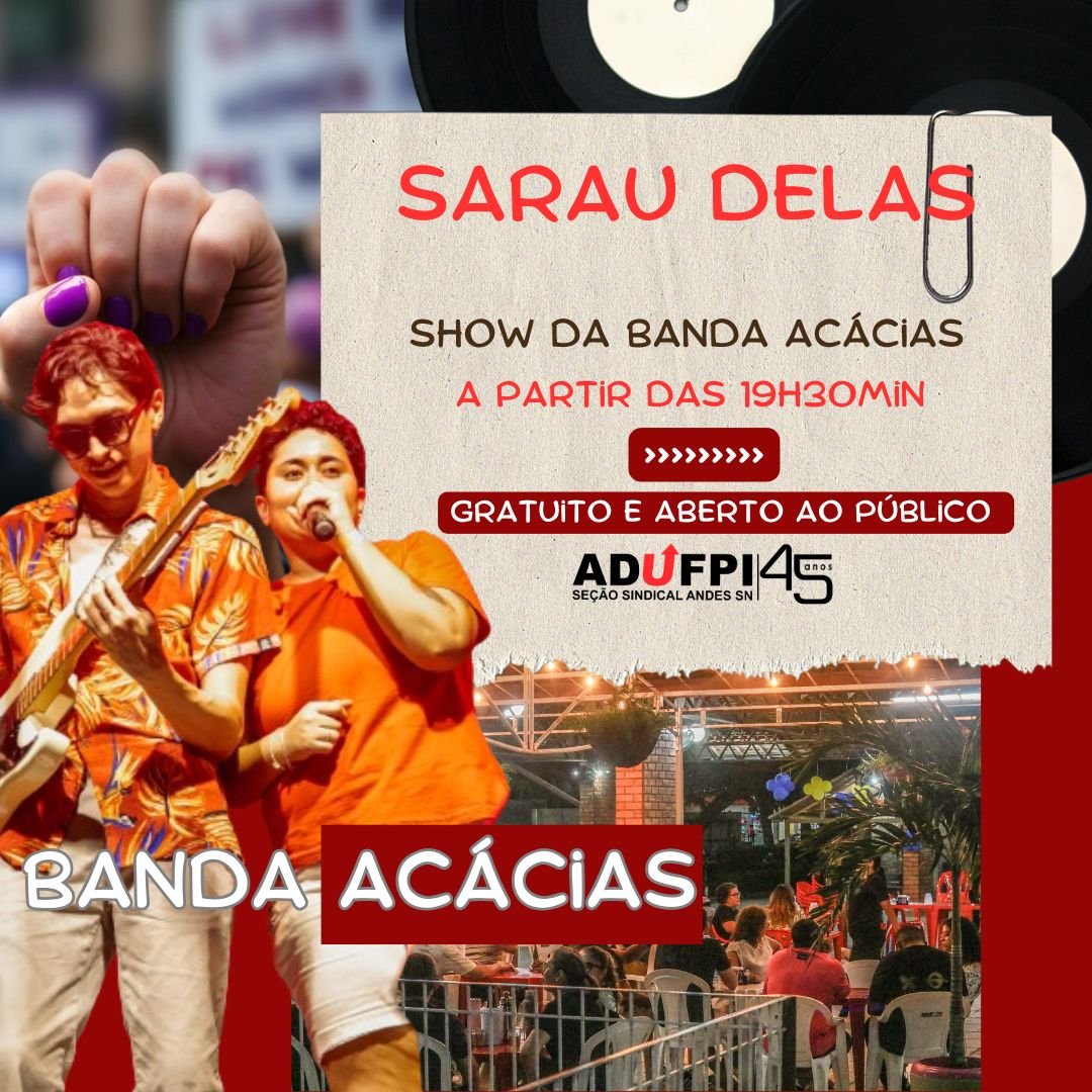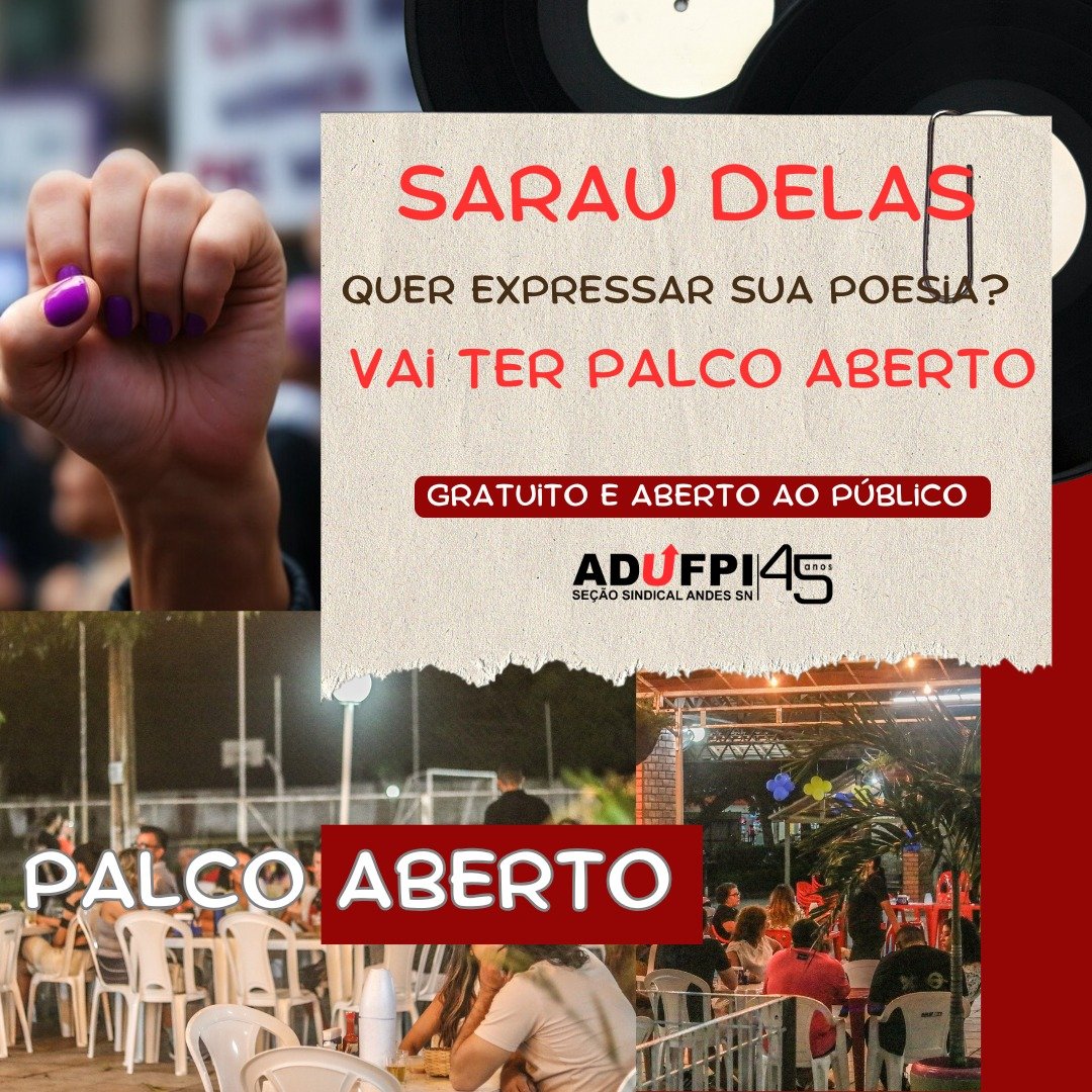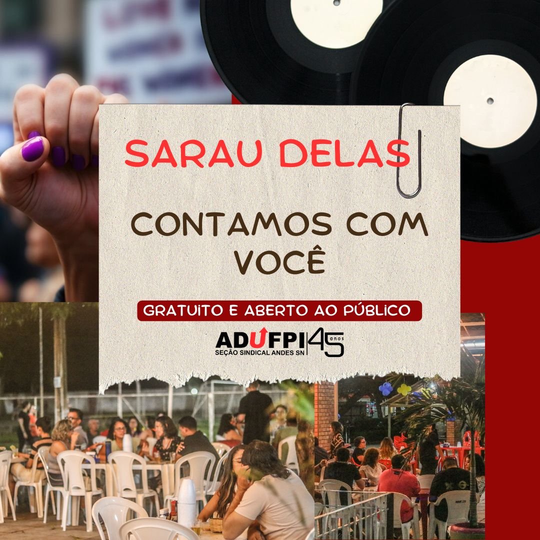 Março é delas, e a ADUFPI convida todas e todos para uma noite de cultura, arte e resistência no SARAU DELAS! Em homenagem ao Mês das Mulheres, vamos celebrar com poesia, música e debate político, fortalecendo a luta das mulheres e a luta sindical.