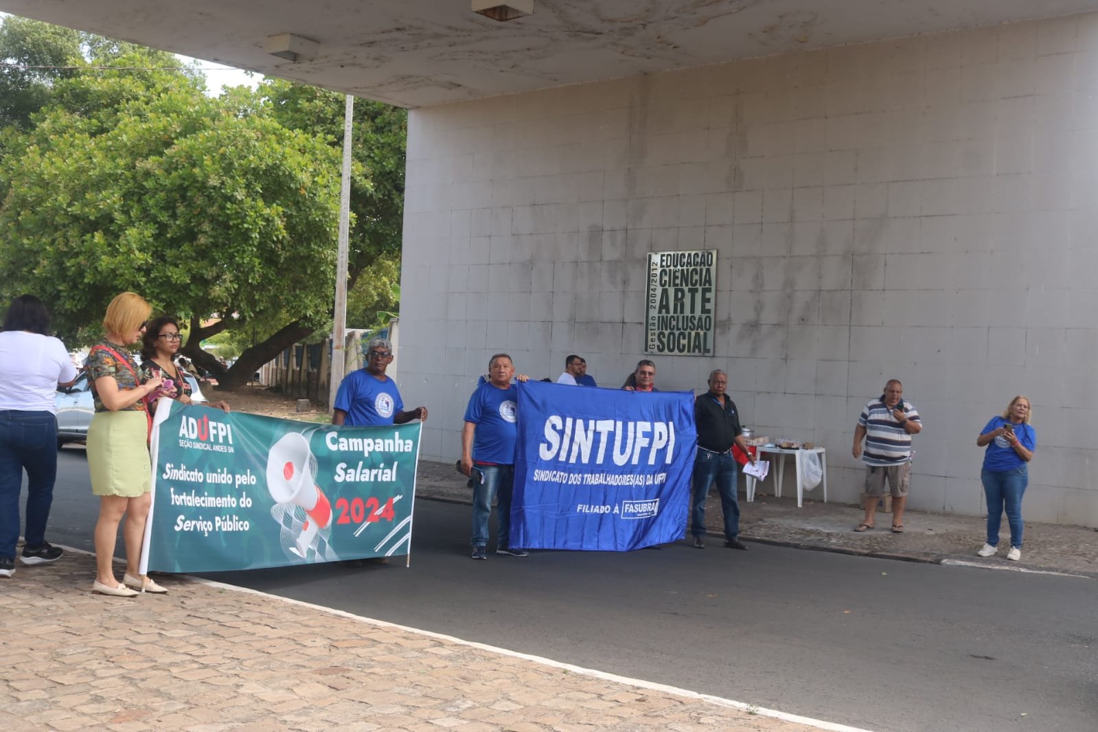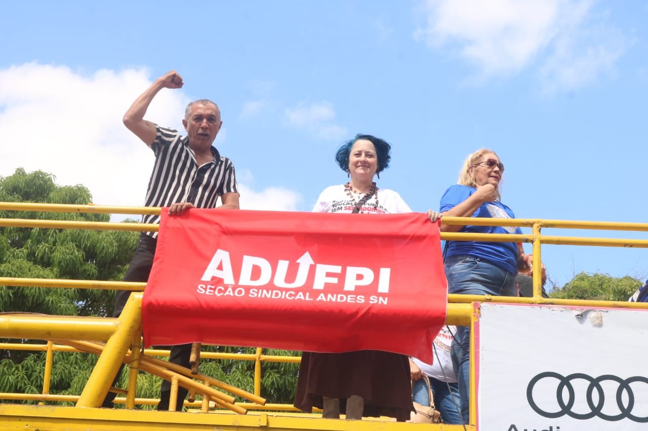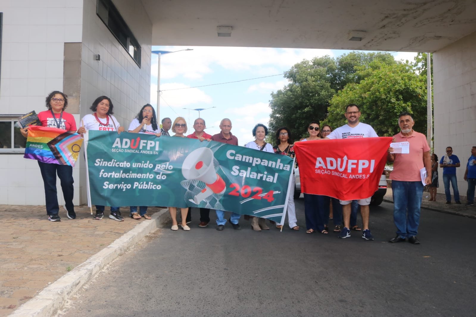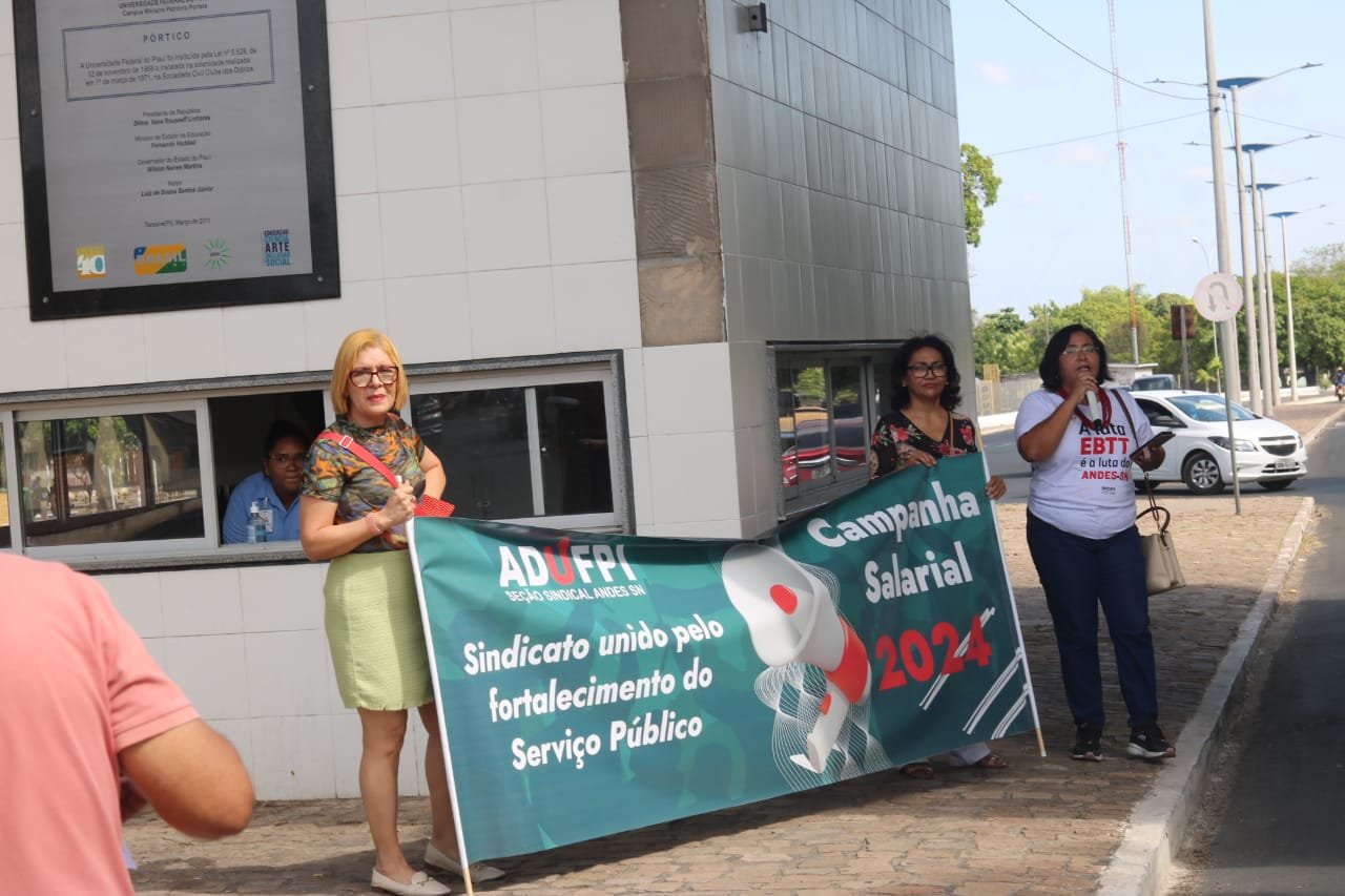 Na manhã desta terça-feira, dia 3 de outubro, a ADUFPI em parceria com a ADCESP, DCE, SINTUFPI e ANDES organizaram um ato de paralisação de atividades, no pórtico da Universidade Federal do Piauí.