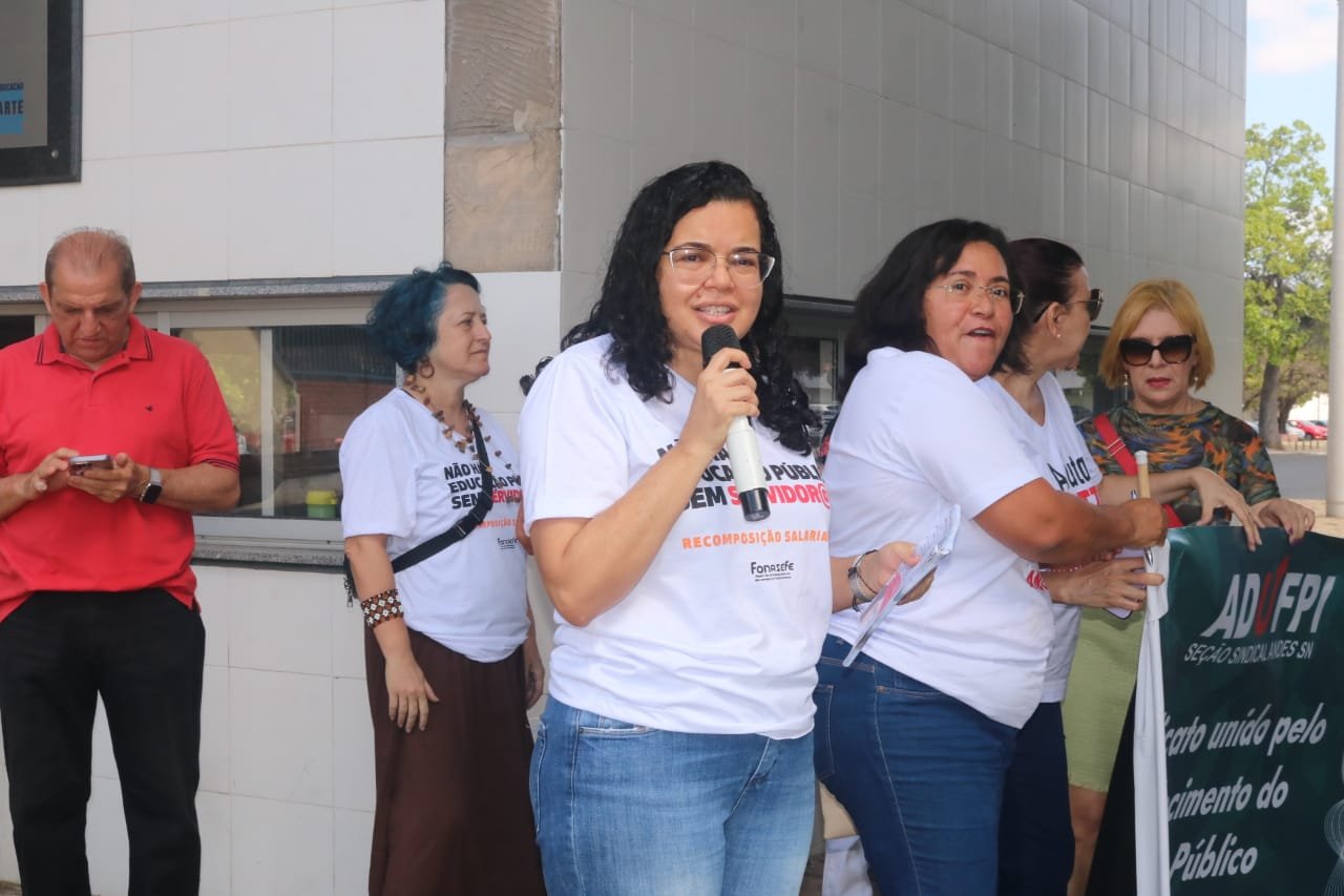 Representando a Diretoria da ADUFPI, estiveram presentes, a Secretária Geral, professora Julinete Castelo Branco, a Diretora Acadêmico Cultural, professora Simone Hoefel, a Diretora Sindical, professora Carmen Lima, o Vice-presidente, professor Alexandre Medeiros, e a Presidenta do sindicato, professora Marli Clementino.